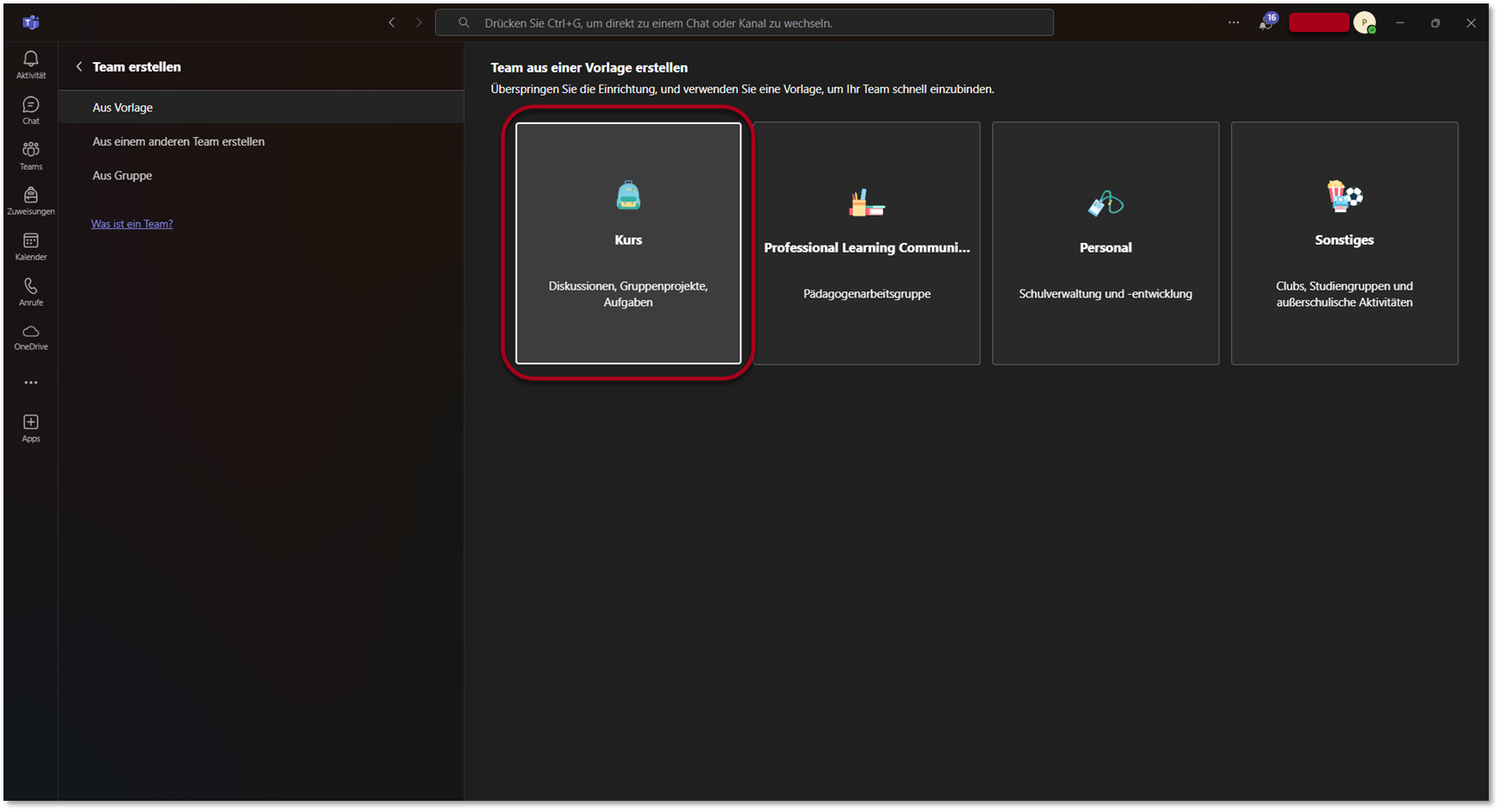 Kursvorlage & Benutzerrechte in Microsoft Teams