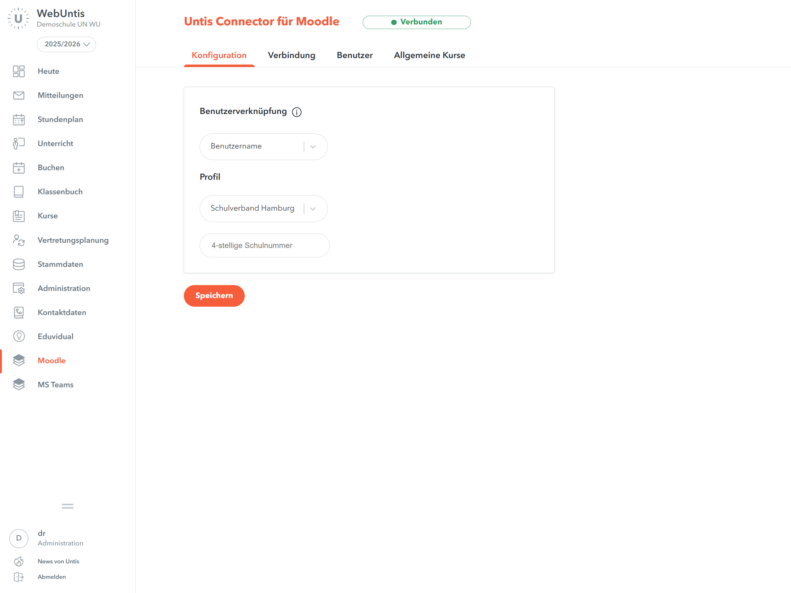 - Öffnen Sie Untis Connector für Moodle → Konfiguration.